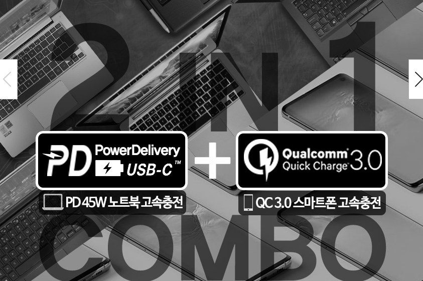 아래와 같은 상품 안내에서는 노트북과 스마트폰이 고속으로 충전된다고합니다.