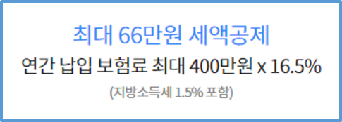 그러므로 최대로 환급되는 세금혜택은 '400만원 X 16.5% = 66만원' 이 됩니다.
