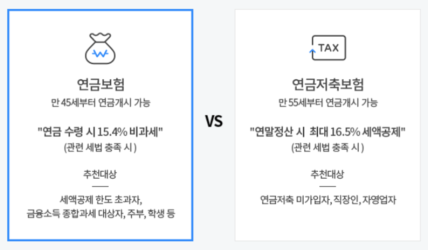 그렇기때문에 연금저축보험에서 적용되는 보험 납입액에 대한 세금혜택이 연금보험에서는 없습니다!