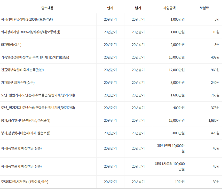 | 주택화재보험 보장내역 및 보험료 (0) | 2020.12.08 |