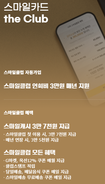 먼저 스마일카드 더 클럽은 스마일클럽 연회비 3만원이 면제입니다.
