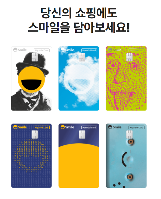 개인적으로는 아랫줄 중간에 있는 기존 스마일카드와 유사한 기본 디자인이 가장 마음에 드는군요.