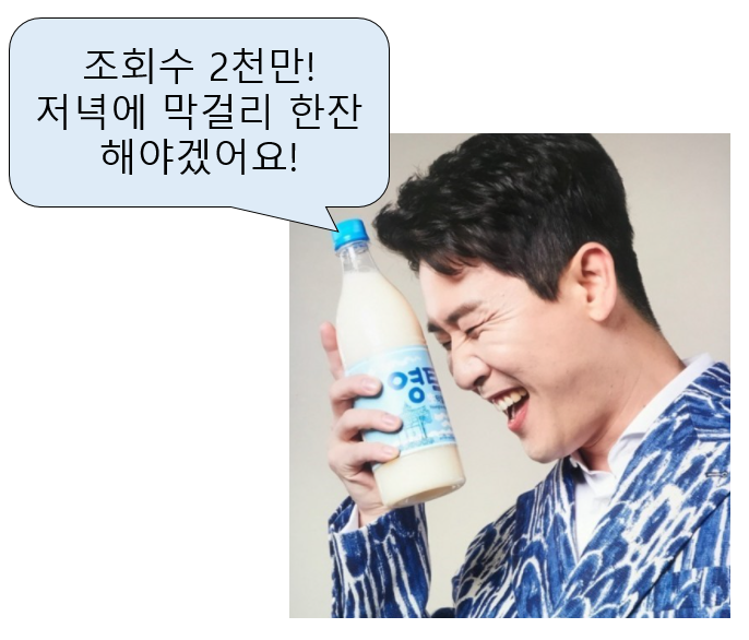 TV 조선 공식 유튜브에 올려진 막걸리 한잔' 영상은 2020년 9월 22일부로 조회수가 무려 2천만 뷰를 넘어섰다고 합니다.