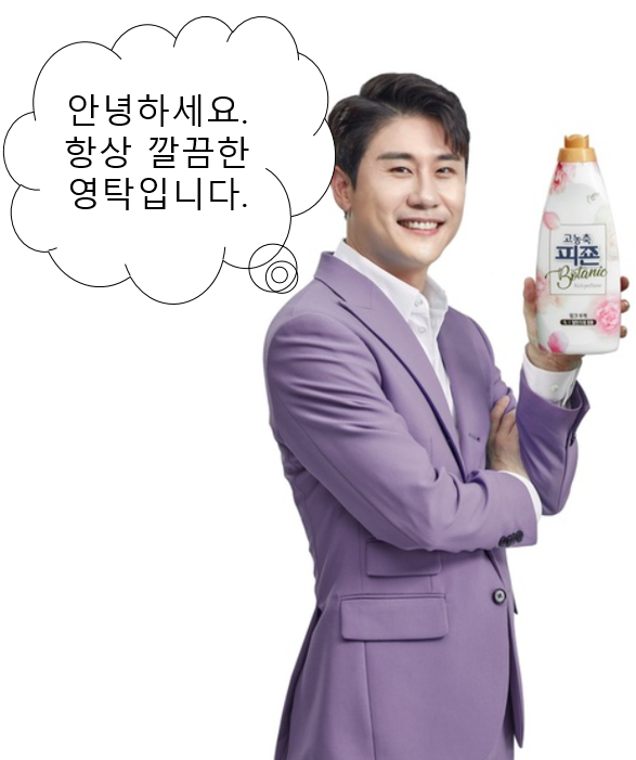영탁 자체가 상당히 깔끔하고 깨끗한 느낌이 강하기 때문에 섬유유연제 광고와 잘 어울리기도 하는데요, 피죤의 주 구매고객인 주부님들께 좀더 친근하고 매력적으로 어필하기를 바래봅니다.