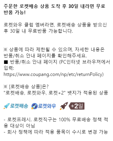 참고로 로켓배송 상품은 쿠팡에서 직접 판매하며 쿠팡자체 배송서비스를 이용합니다.