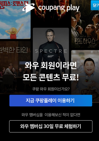 로켓와우 멤버쉽 혜택 8 : 쿠팡플레이 서비스 무료 제공.