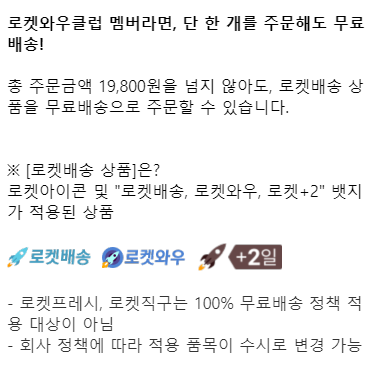 로켓배송 및 로켓와우 상품에만 적용되는 혜택입니다.
