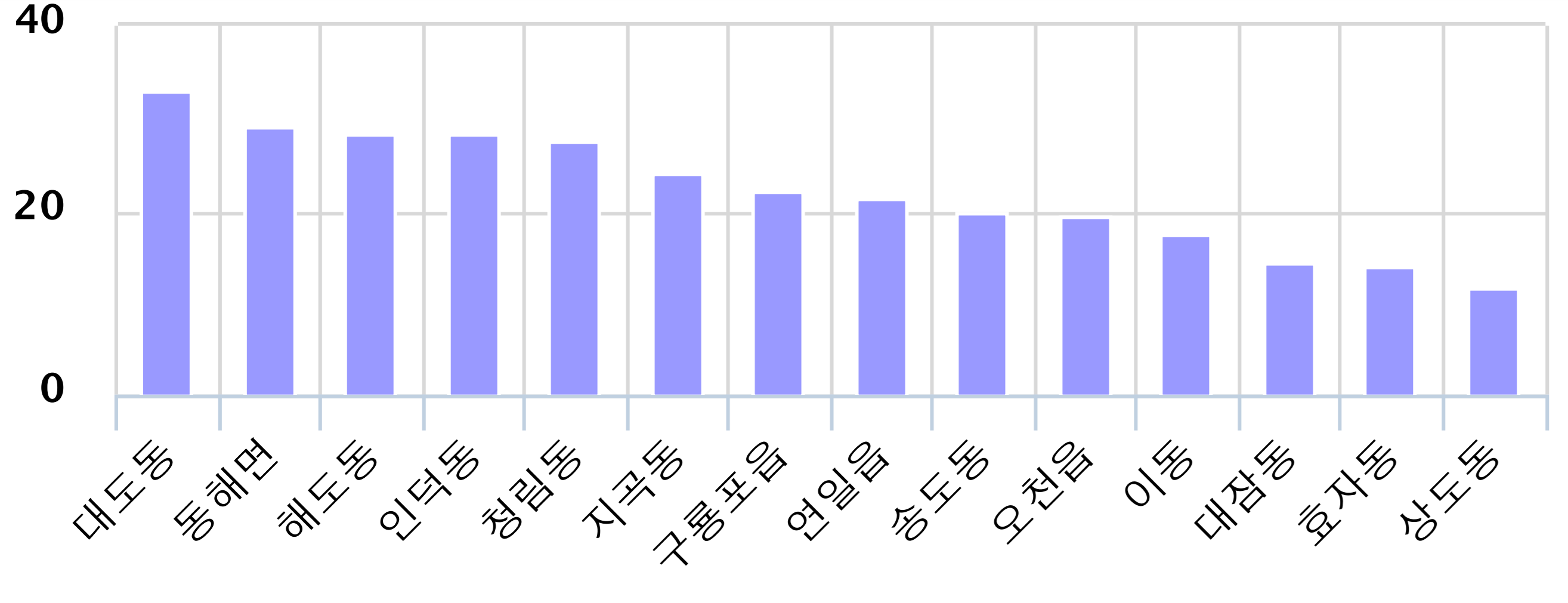 3. 포항 지역별 아파트 평균 연식(노후도).