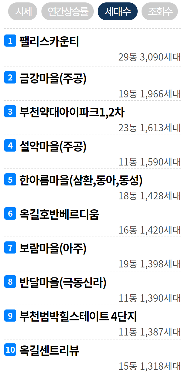 (3) 부천 아파트 세대수 Top 10.