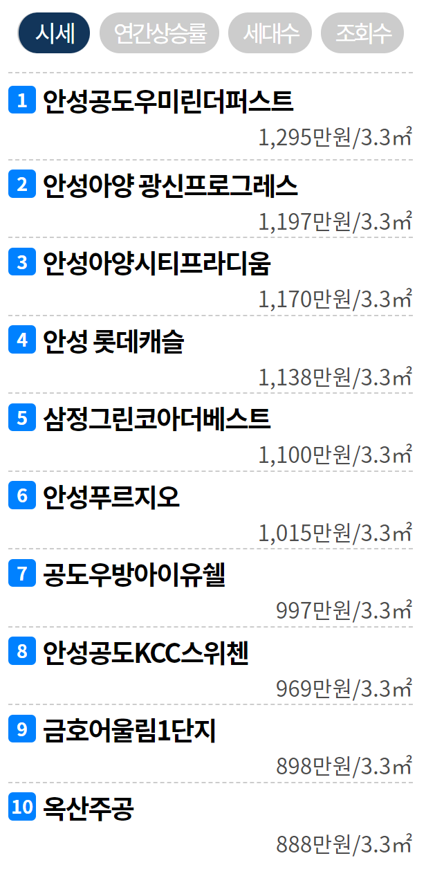 (2) 안성시 아파트 시세 상승률 Top 10.