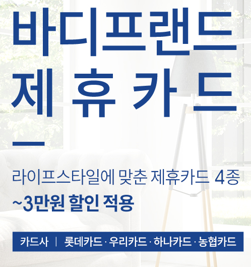바디프렌드 구매 목적으로만 제휴카드 만드시고, 큰 금액 안쓰신다면 하나카드도 좋습니다!