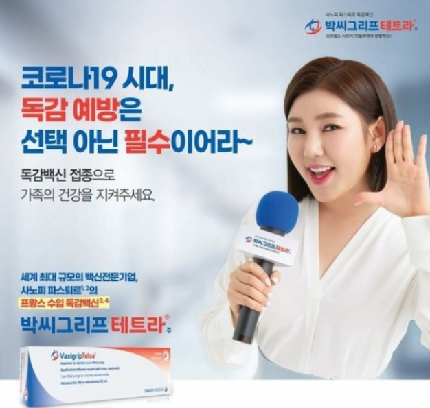 백신판매회사 사노피 파스퇴르가 독감 백신 ‘박씨그리프테트라주' 의 광고모델로 가수 송가인씨를 선정하였습니다.