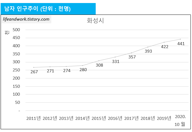 이러한 인구 증가 추세라면 화성시는 머지 않아 인구 백만의 대도시로 성장할 지도 모르겠습니다.