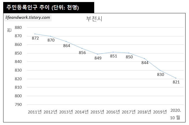 부천시 인구는 지속 감소추세에 있습니다.